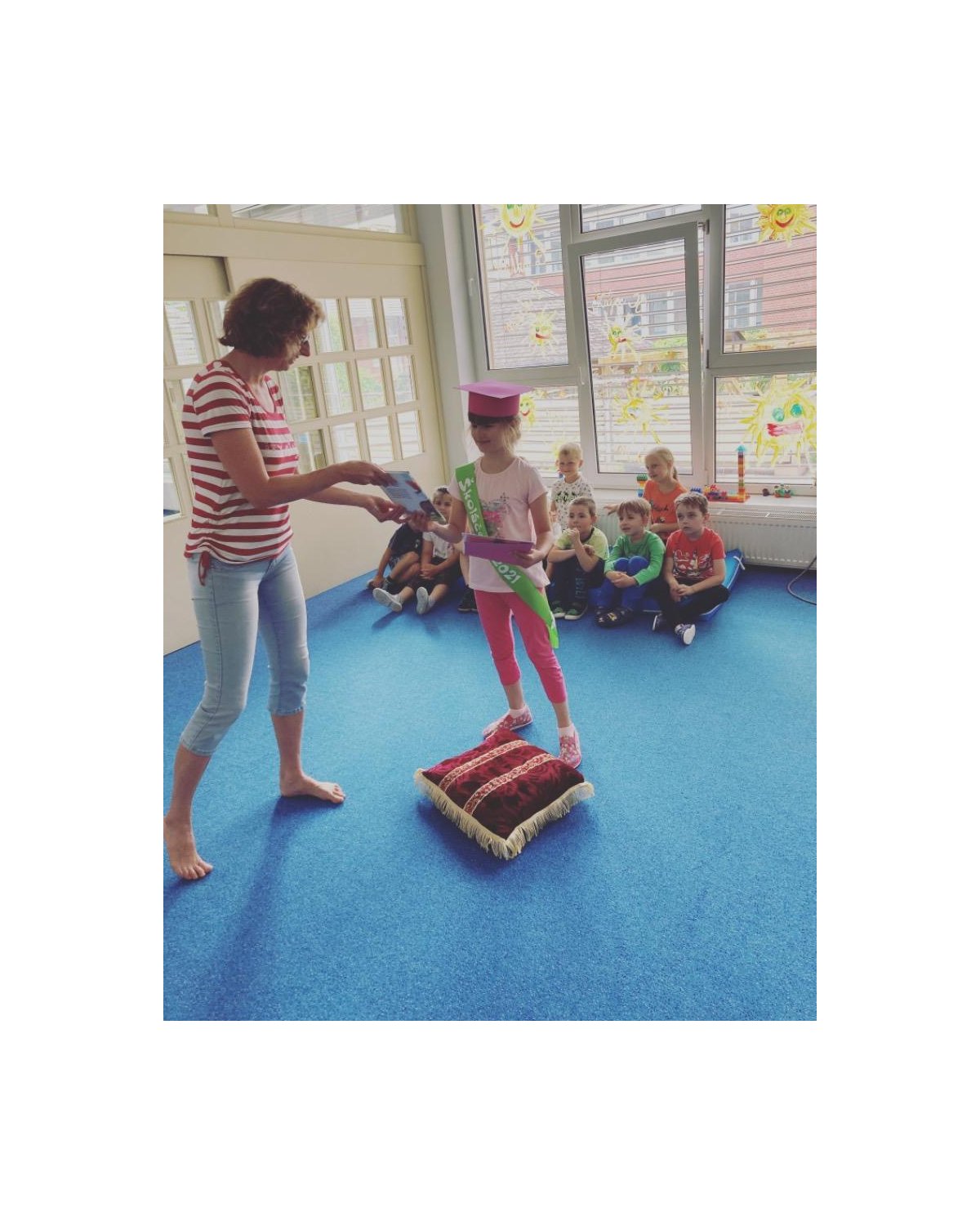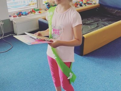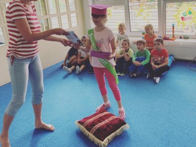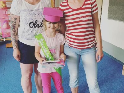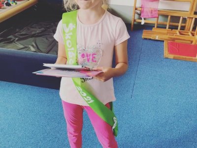 Tento rok se musíme rozloučit s naší předškolačkou Karolínkou. A protože se nemohla dostavit na společné pasování, odpasovali jsme ji ve třídě. Dostala šerpu, knihu a pamětní list. Budeš nám chybět !! Přejeme ti spoustu úspěchů ve škole a hodně kamarádů. Ať se ti daří !