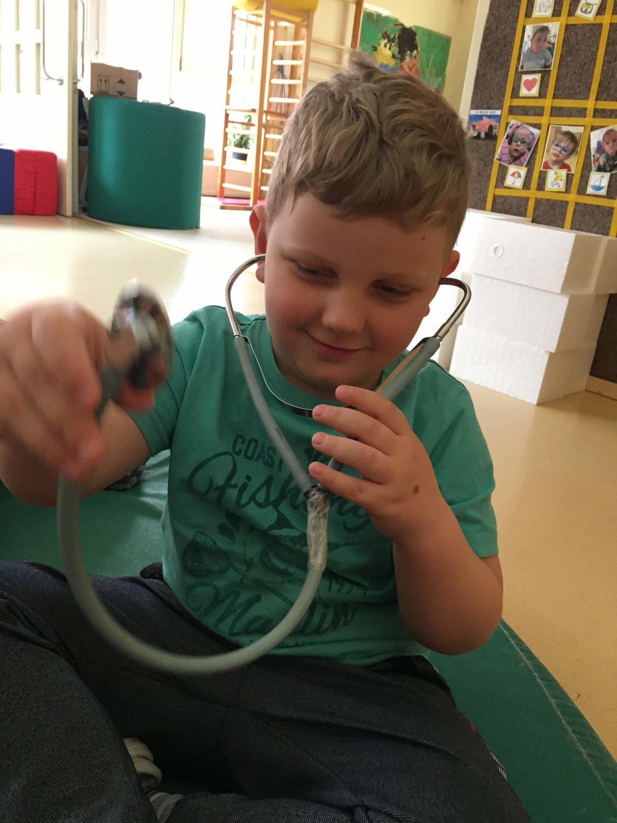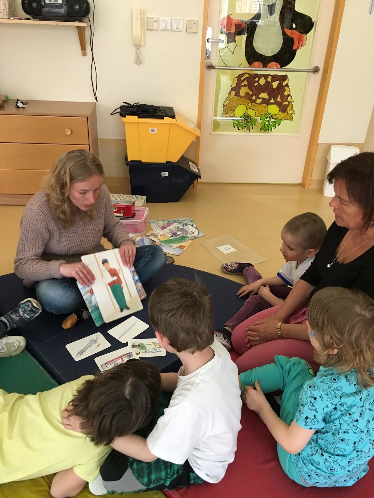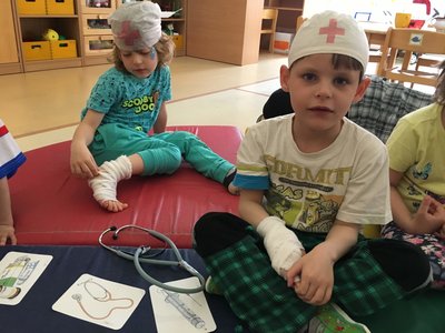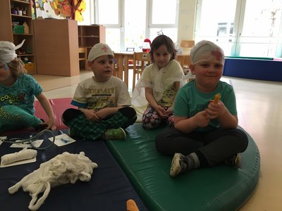 Několik dubnových dnů jsme se věnovali svému zdraví. Povídali jsme si, jak o své zdraví pečovat a jak předcházet úrazům. Navštívili jsme "Záchranku" v Roztokách. Zdravotníci nám ukázali veškeré vybavení sanitky, kterou jsme si mohli i zevnitř prohlédnout a vyzkoušet si i přístroje, které zachraňují životy, Další den jsme se vydali do lékárny v Rakovníku, kde nám paní Magistra ukázala celý chod lékárny.