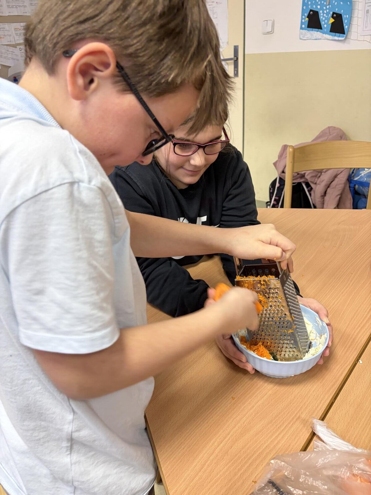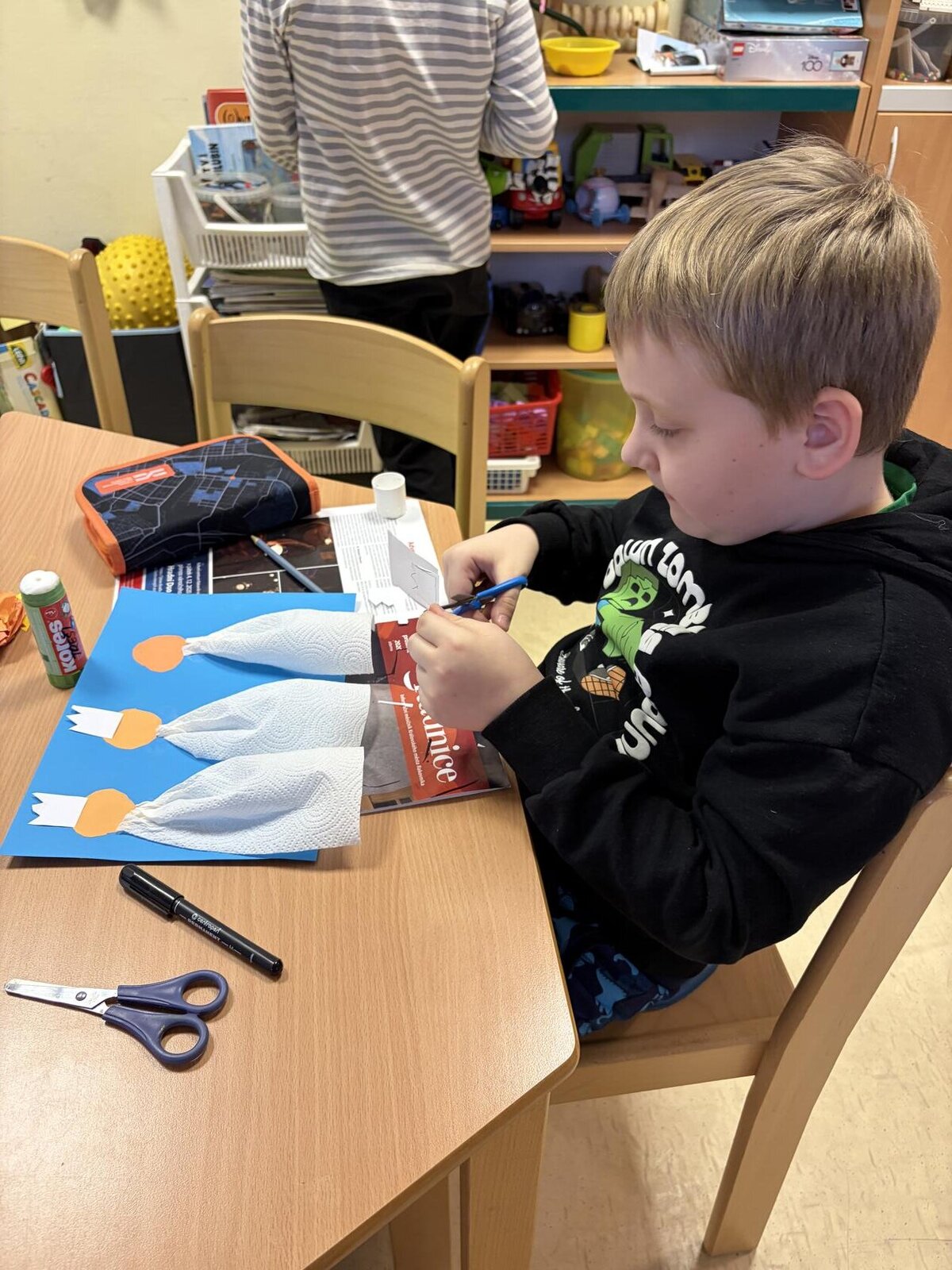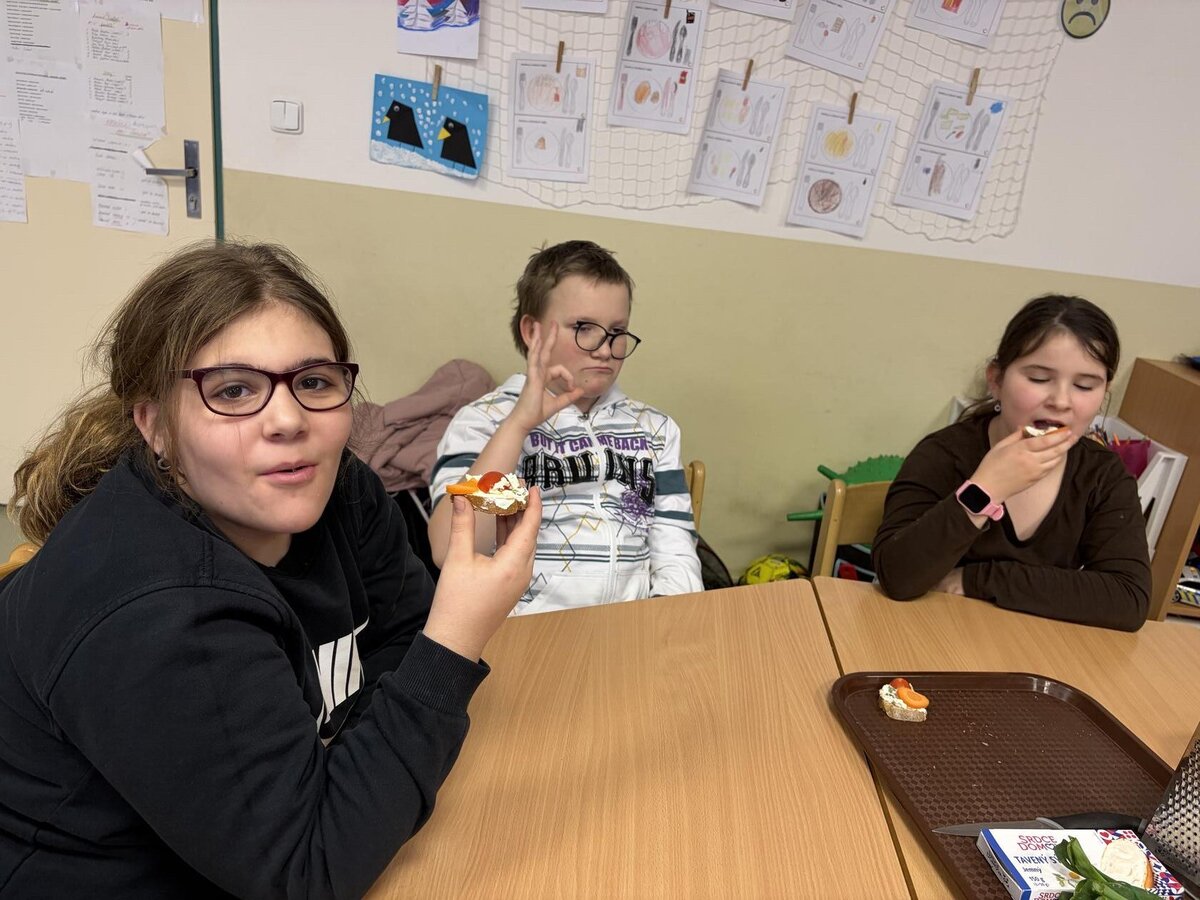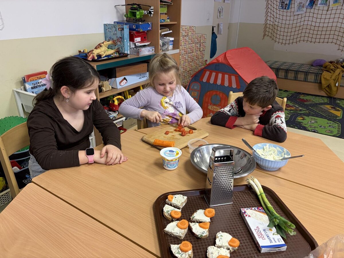 Z papírových kapesníčků jsme vyráběli Tři krále, bobovali jsme ve veřejném parku, tvořili jsme krmítka. Odměnou za vysvědčení byla připravená pomazánka, kterou jsme si namazali na chleba a ozdobili zeleninou.