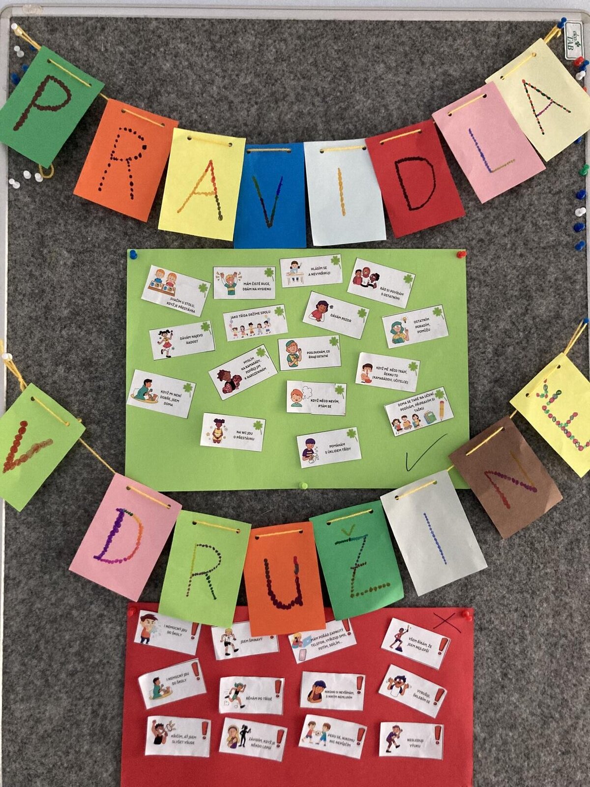 Vytvořili jsme si družinová pravidla, upekli jsme si jogurtovou buchtu. Zapojili jsme se do projektu "Na cestách s rozumem", kreslili jsme dopravní značky na kamínky a shlédli jsme na interaktivní tabuli dopravní video o přecházení vozovky a 6 nejčastějších chyb.