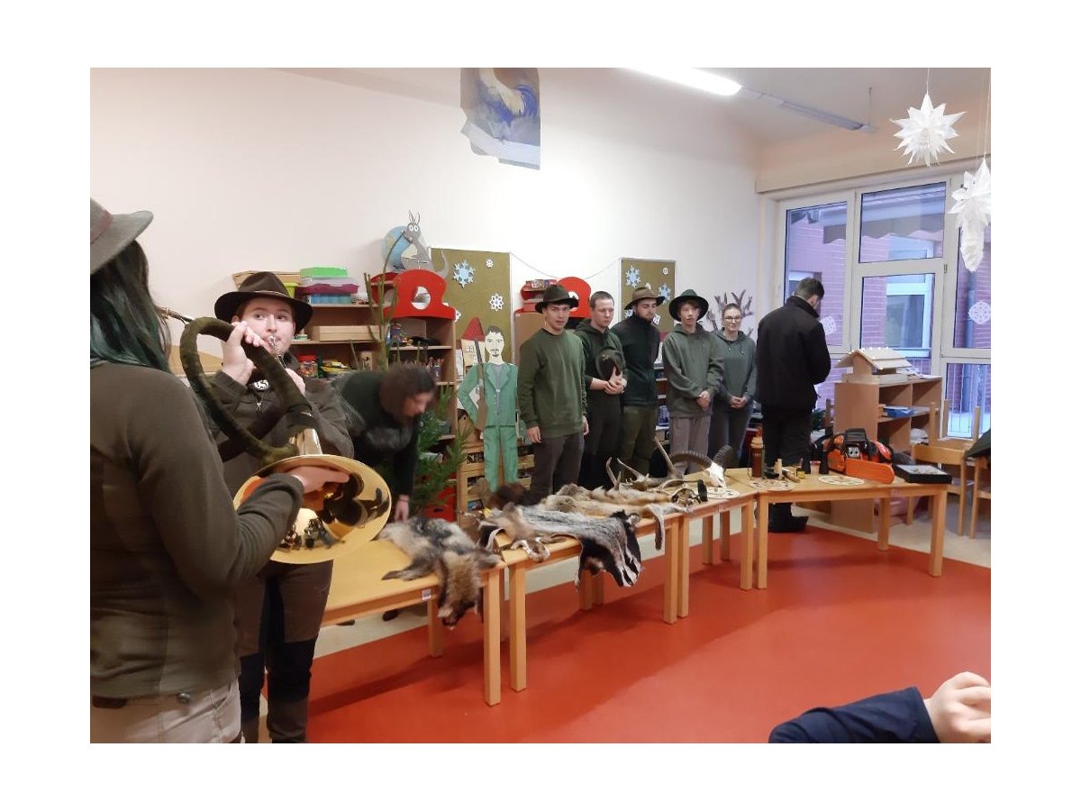 V úterý 13. prosince 2022 za námi přijela lesní pedagožka a ředitelka Střední lesnické školy Žlutice, p. o. paní Ing. Bc. Radka Stolariková, Ph.D. s několika studenty. Ti měli pro děti a žáky naší školy připravený program a také nám přivezli stromeček.