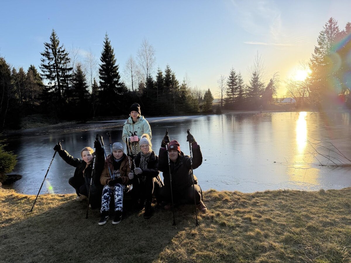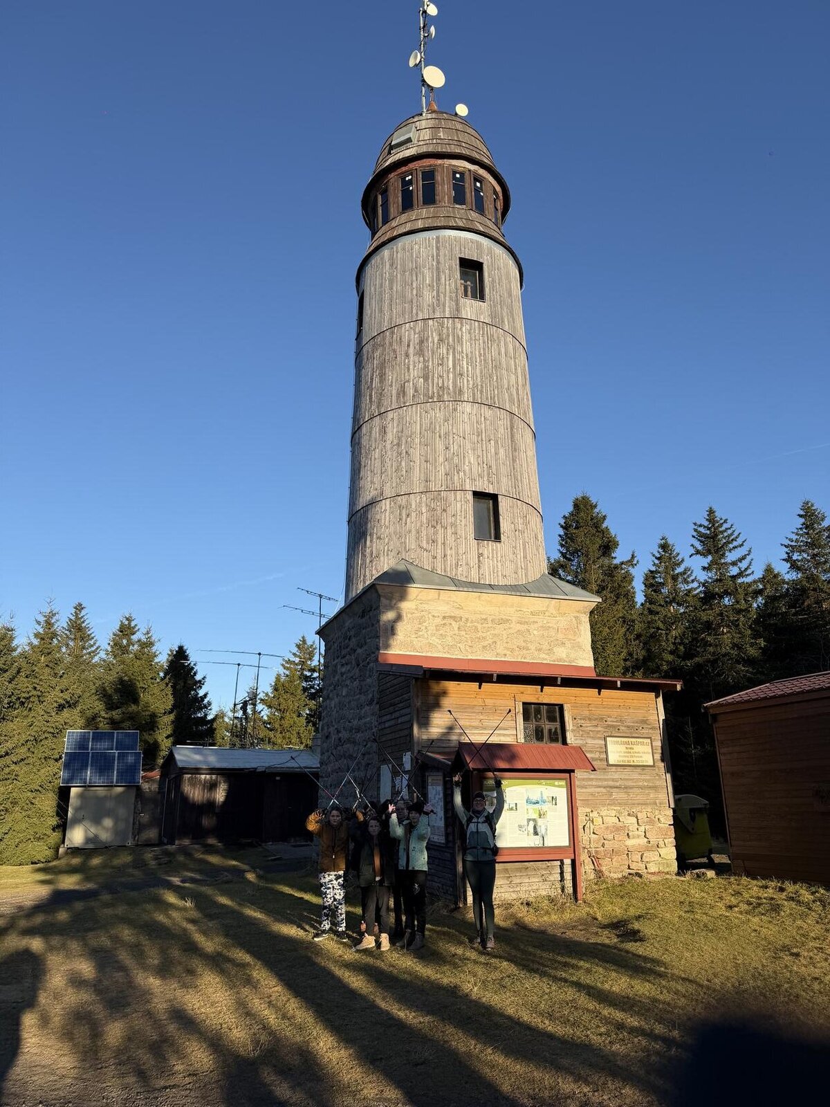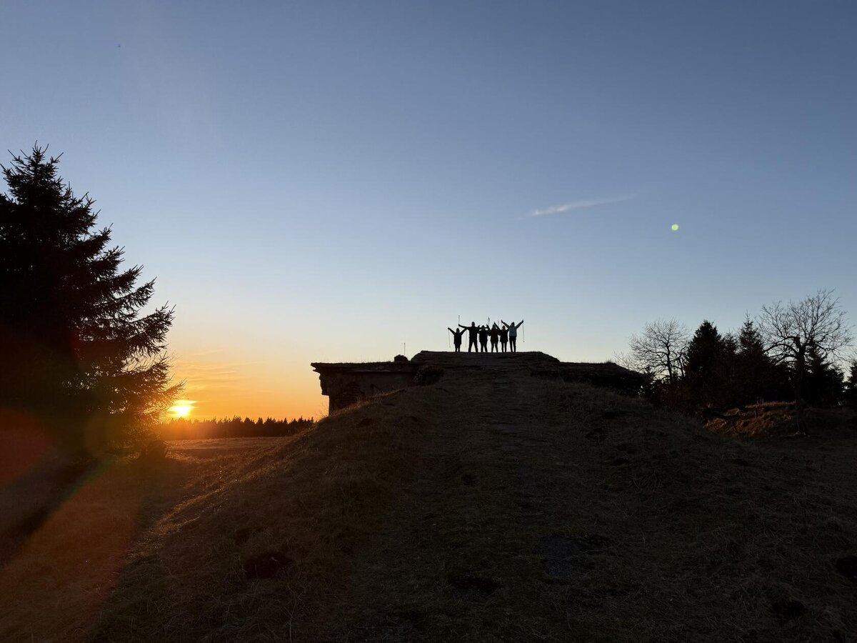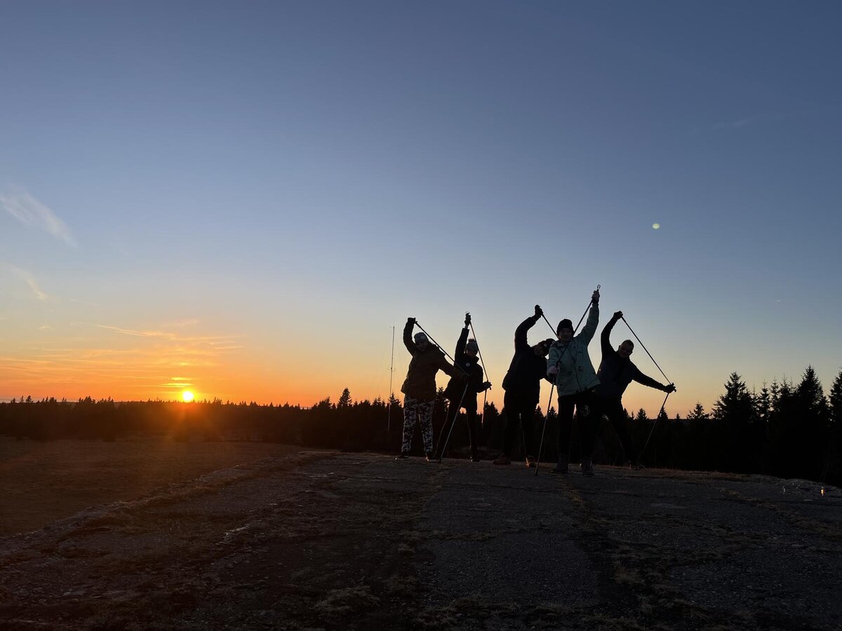 Třetí den a počasí pořád pohádka. Pěkná vycházka na Blatenský vrch. Návštěva u Horské služby. Cvičení při západu Slunce.