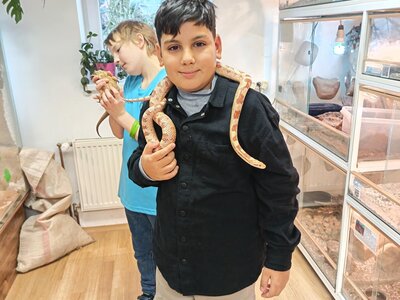 Dne 11. 11. 2025 jsme byli navštívit zázemí chovatelského kroužku v DDM. Žáci měli možnost vidět a pochovat si živočichy žijící u nás, ale také živočichy cizokrajné.