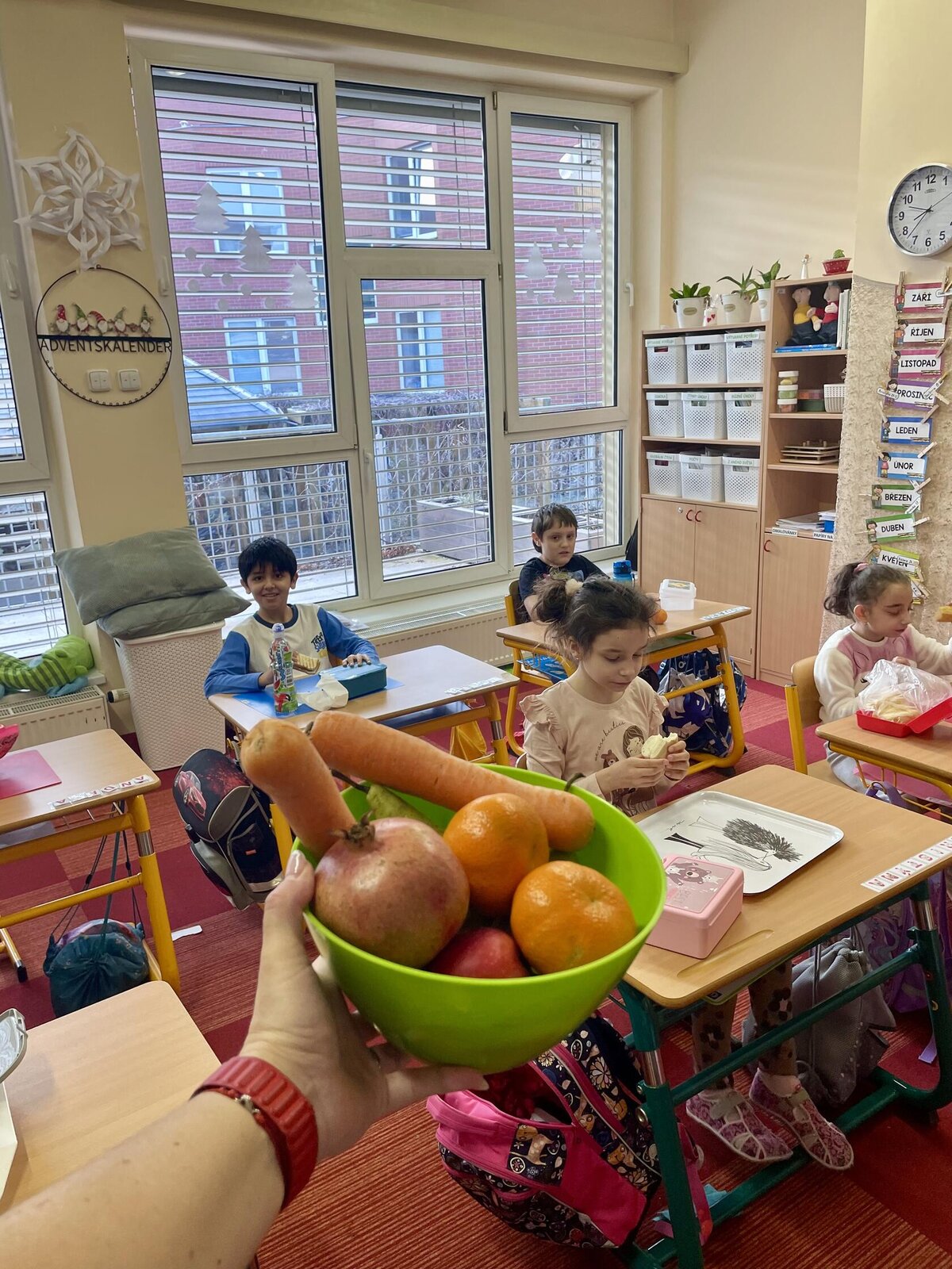 Leden patřil zdraví, prevenci a imunitě. Opakovaně jsme s dětmi navštěvovali solnou jeskyni, jejíž prostředí má blahodárné účinky na lidské zdraví. Pravidelně navštěvujeme školní bazén a saunu, které podporují prevenci onemocnění a celkové zdraví dětí. V rámci Prvouky jsme si povídali o lidském těle a jeho částech a učili jsme se je popsat. Při výtvarné výchově se děti učily nakreslit lidskou postavu. V hodinách pracovní výchovy jsme vyráběli čepice, šály a rukavice. Děti se učily navíjet vlnu na šablonu z kartonu. Tvořili jsme obrázky z ledových kostek a ukázali si, jak rychle se led při zahřívání rozpouští.