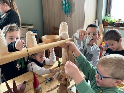 V Hřebečníkách jsme navštívili řezbářskou dílnu. Měli jsme možnost pohrát si s loutkami a seznámit se s nástroji, které jsou potřebné k vyřezávání loutek. Sami jsme si vyzkoušeli vybarvit dřevěné výřezy rybiček. K obědu jsme opékali buřty na ohni. Celý den nám dělalo společnost zvědavé koťátko. Výlet jsme si moc užili.