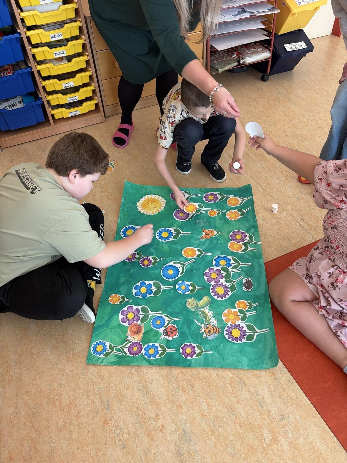 Žáci v VII. oddělení tvořili jarní louku z papírových květin, navštívili jsme dětskou knihovnu, kde proběhla i krátká přednáška o půjčování a vracení knih. Podle pracovního listu jsme poznávali jarní květiny, trénovali jsme logické myšlení, jemnou motoriku a slabiky. Sázeli jsme osení, malovali vajíčka a ozdobili je samolepkami s velikonočními motivy. V DDM jsme si stavěli z kostiček na téma: "Hrady a zámky", všichni jsme dostali odměnu.