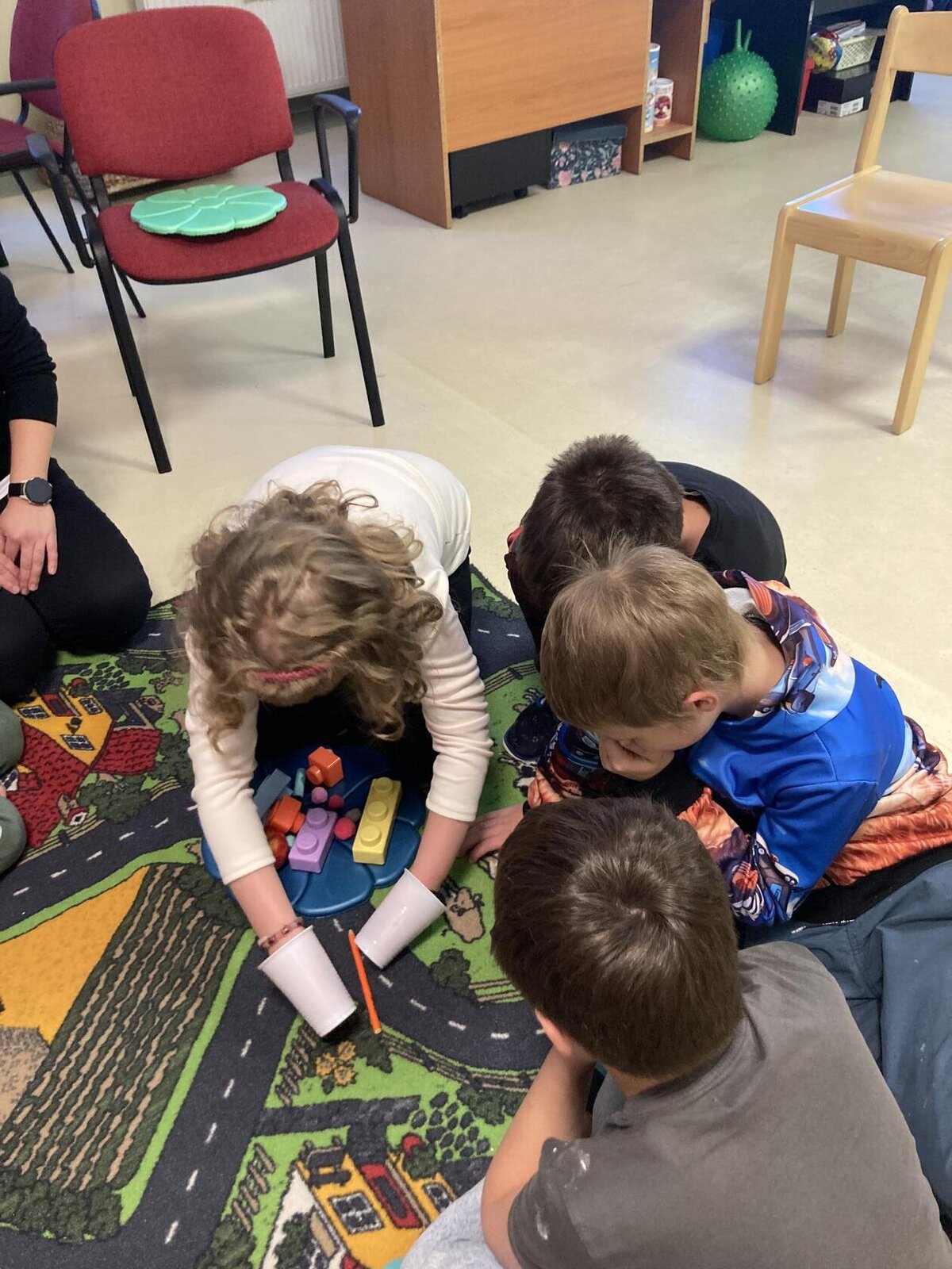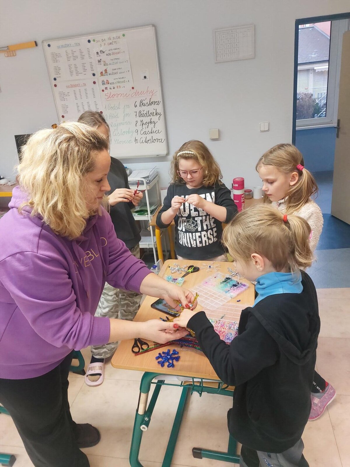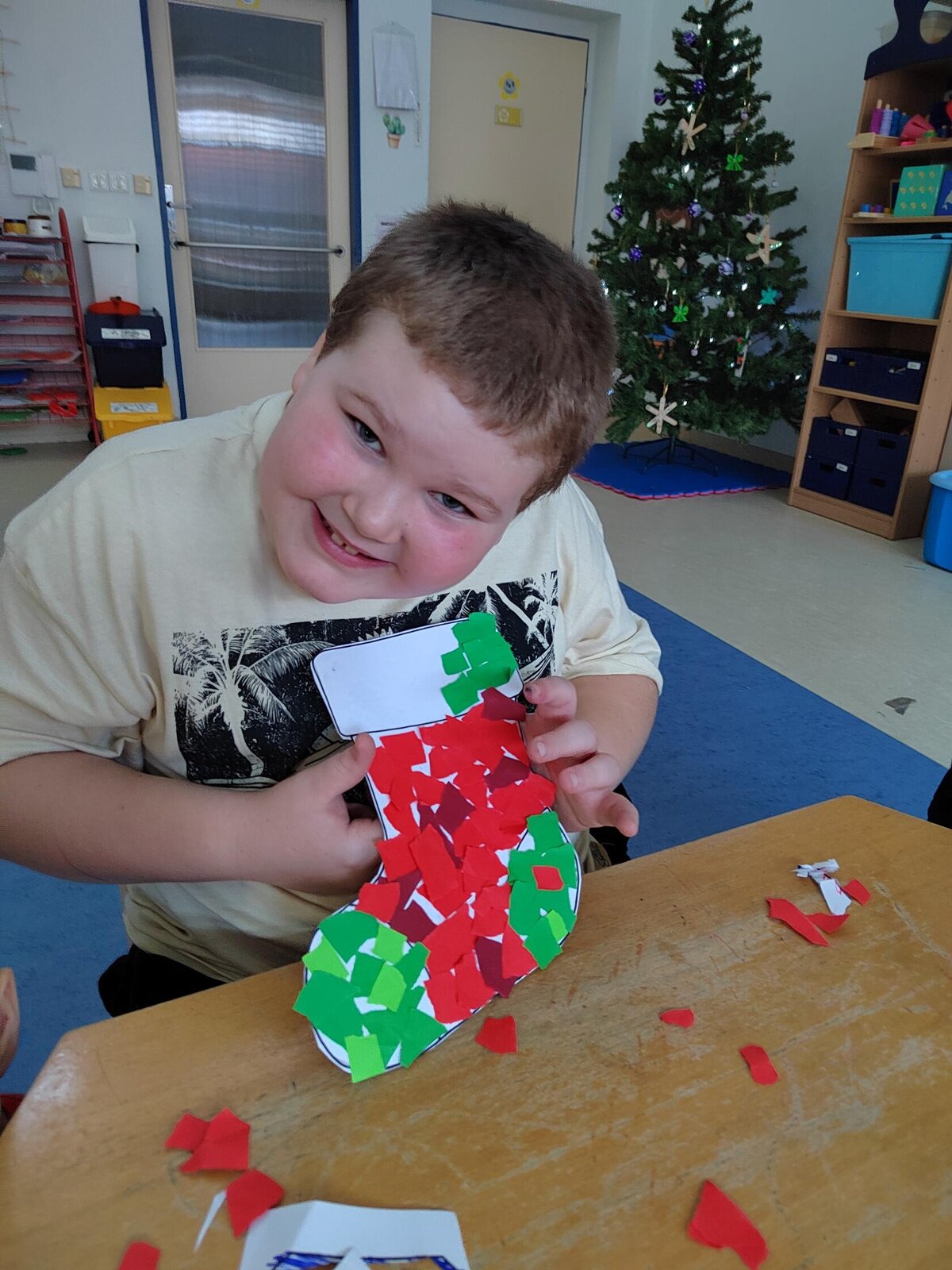 V listopadu a v prosinci jsme vyráběli z papíru husy jako lampičky na svíčku, doplňovali jsme pracovní listy ke Svatému Martinovi, vyráběli jsme výrobky na vánoční jarmark do ZUŠ. Zkoušeli jsme si pomocí kelímku uchopit různé předměty, abychom si uvědomili jak to mají těžké kamarádi, kteří mají problém něco si podat. Vyráběli jsme z korálků hvězdičky, lepili jsme z barevných papírů. Na kroužku vaření jsme si vyrobili perníkové chaloupky.