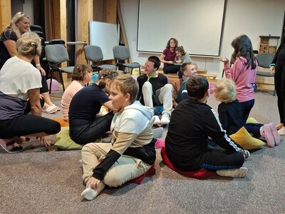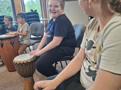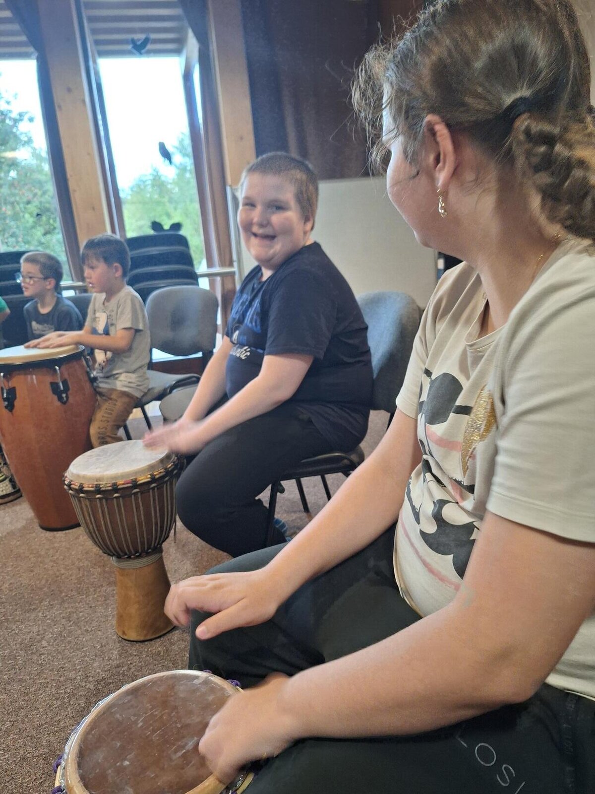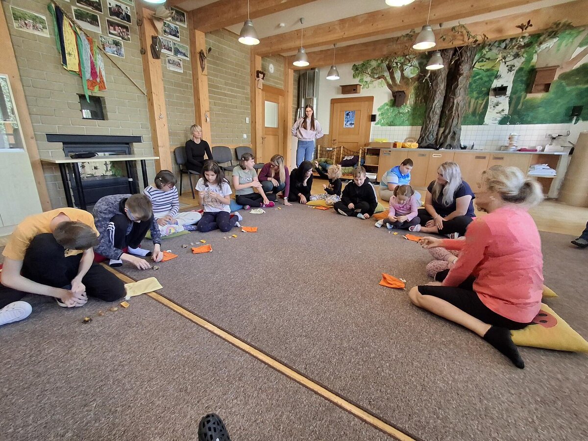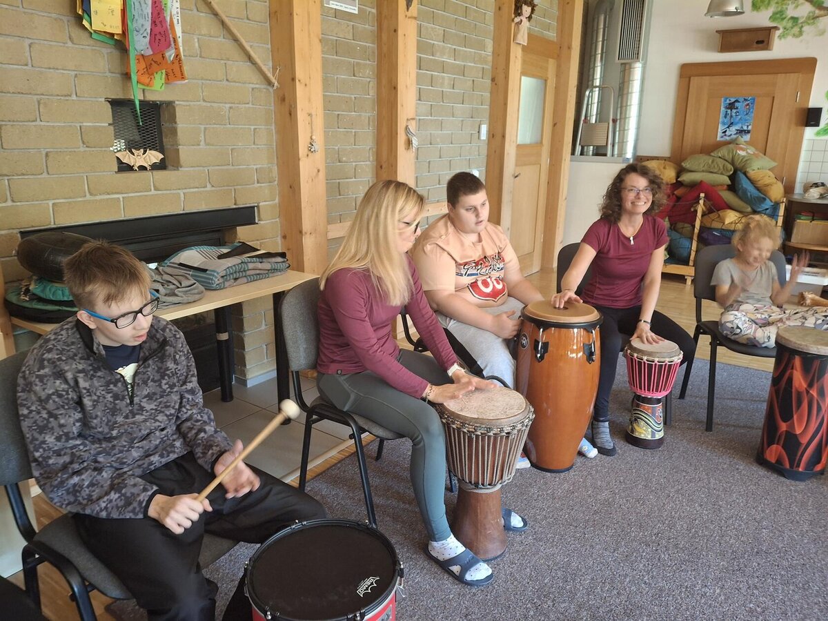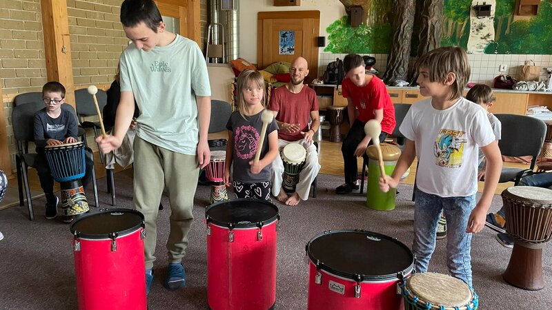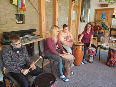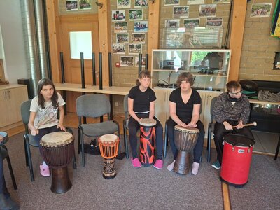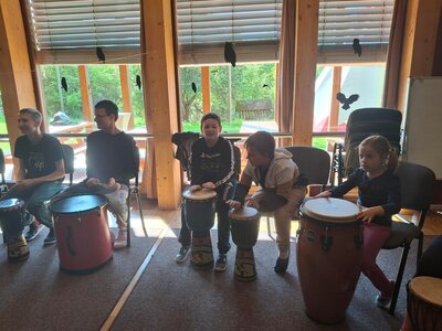 Po obědě a ubytování jsme prožili hodinu společného bubnování. Zjistili jsme, že bubnovat v rytmu, potichu, nahlas, pomalu, rychle... umí podle instrukcí Adama https://www.adamovy-bubny.cz/ úplně každý. A moc nás to bavilo.