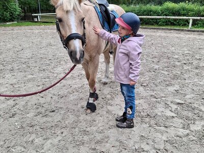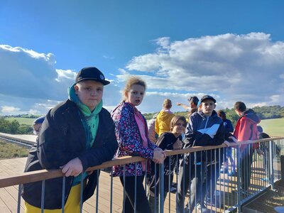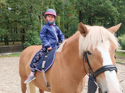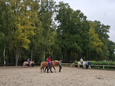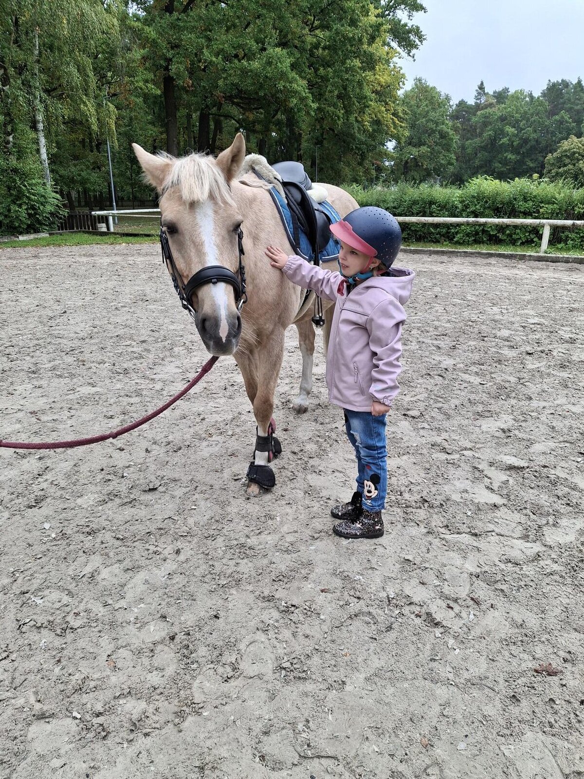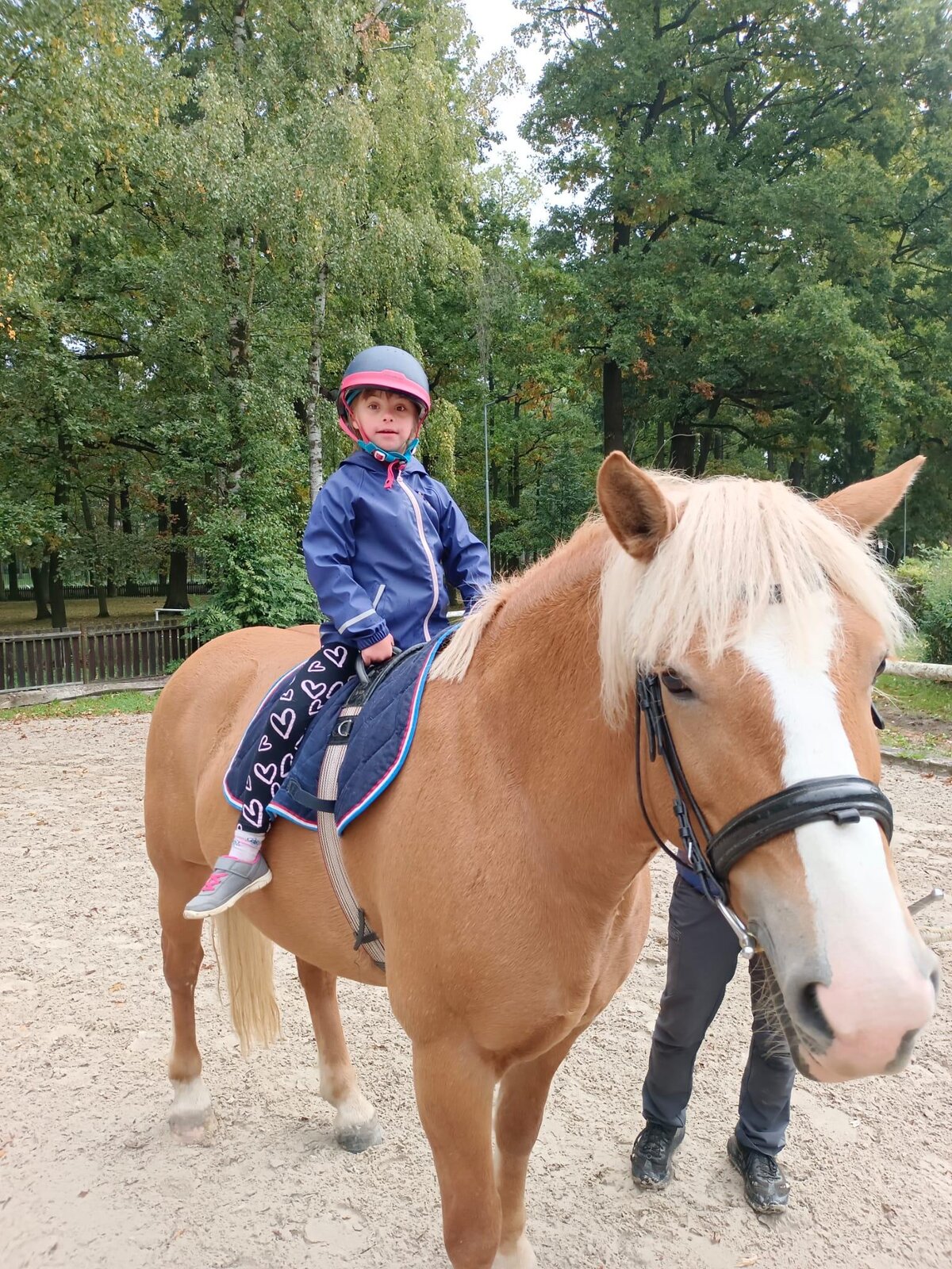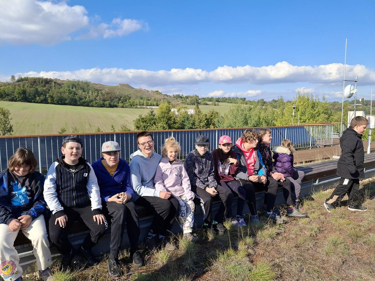 Obě skupiny žáků - ta první cestou zpět do Rakovníka a ta druhá cestou na Čabárnu - se zastavily na kladenském Sletišti, kde žáci vyzkoušeli jízdu na koních Jezdeckého klubu MERCI, z. s. a po ní koníky nakrmili dovezenými dobrotami.