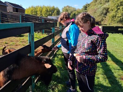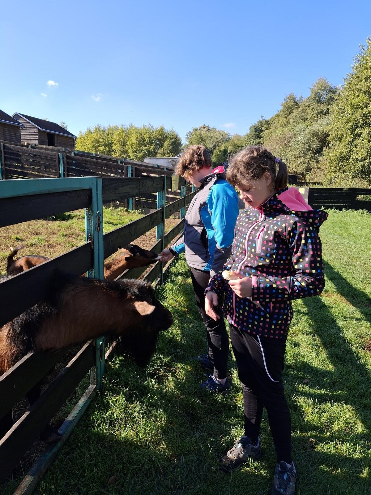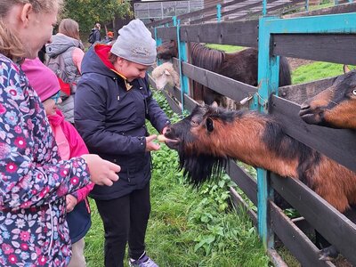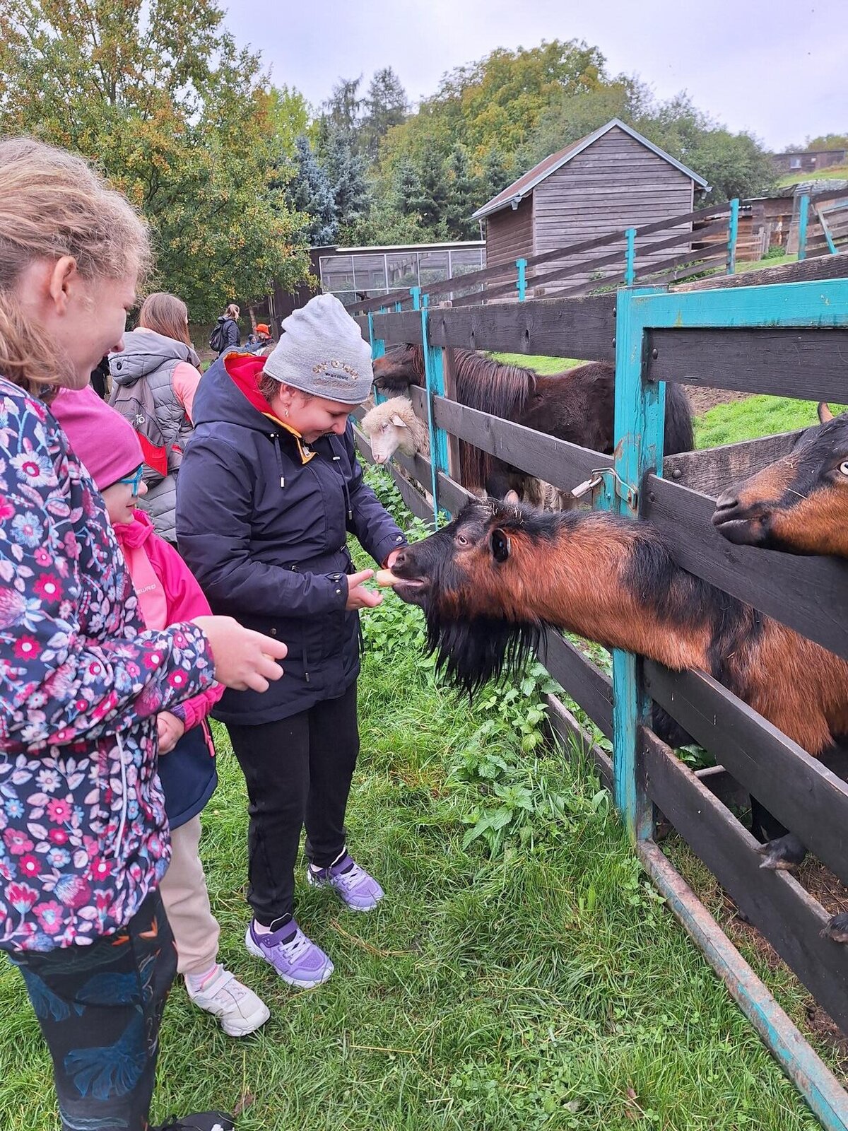 Po příjezdu jsme si prohlédli Záchrannou stanici AVES a zjistili, jaká zvířata a proč se do záchranné stanice nejčastěji dostávají a jakou pomoc potřebují. Kozy, koně a ovce chované v areálu jsme nakrmili starým pečivem. Popovídali jsme si i s krkavcem Karlem.