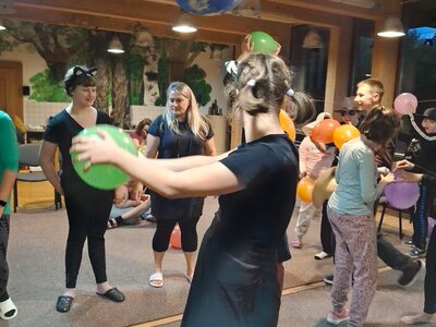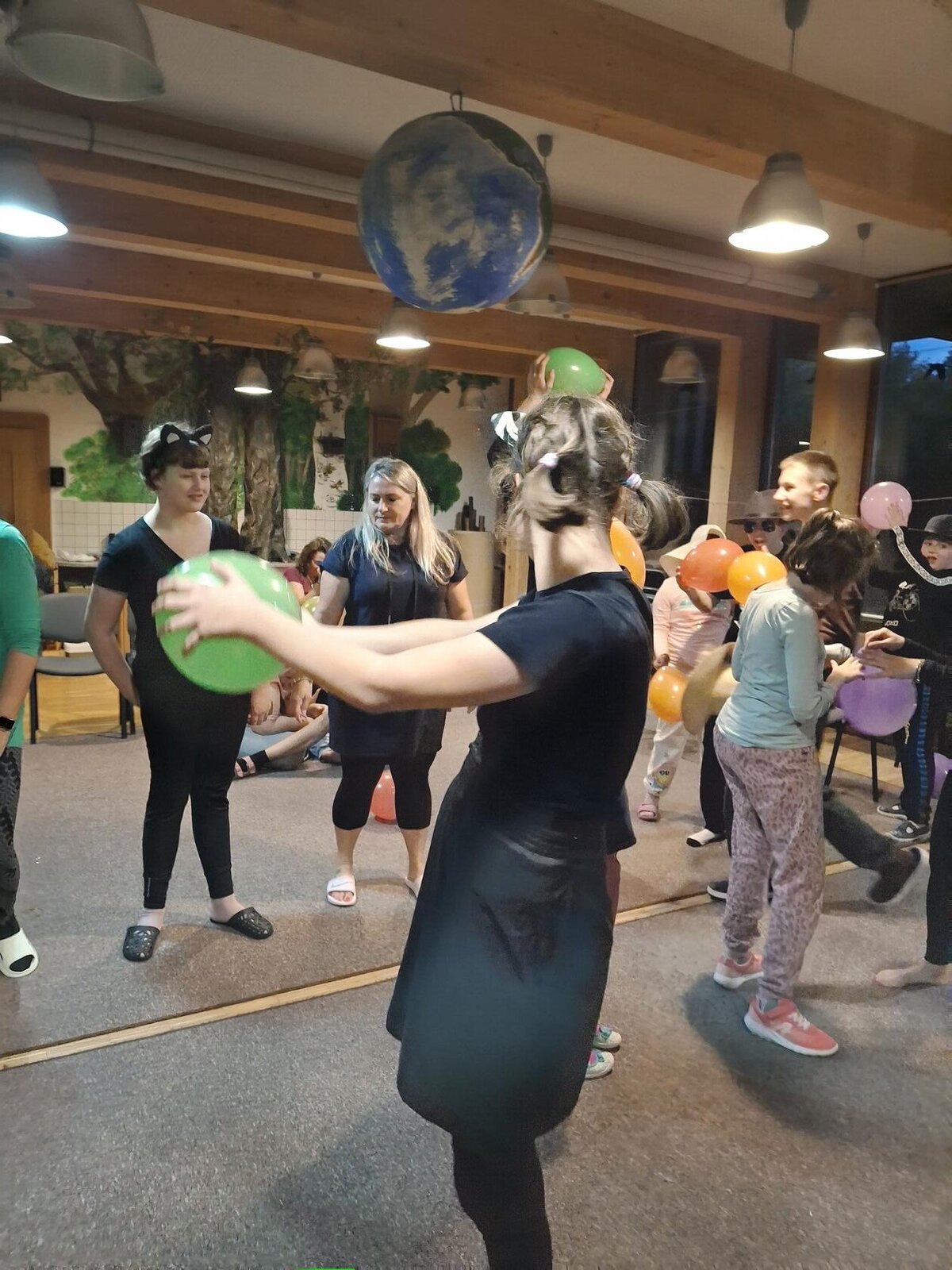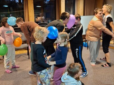 Večer jsme protančili na diskotéce. A před spaním pak společně vyprávěli pohádku O kohoutkovi a slepičce.