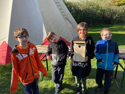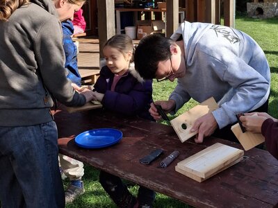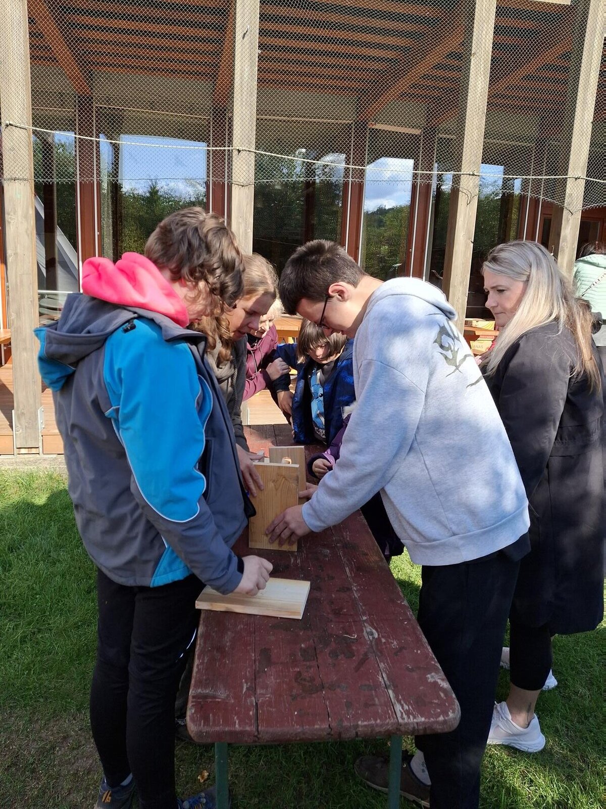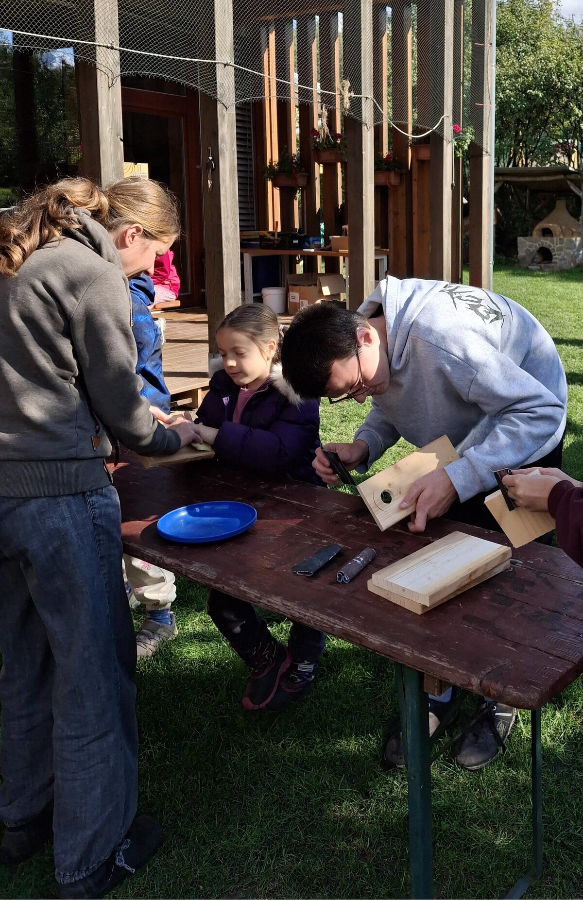 Odpoledne jsme vyráběli ptačí budky (chystáme se je ve spolupráci s R. O. S. Fénix https://ros-fenix.webnode.cz/ umístit na stromy v okolí školy).