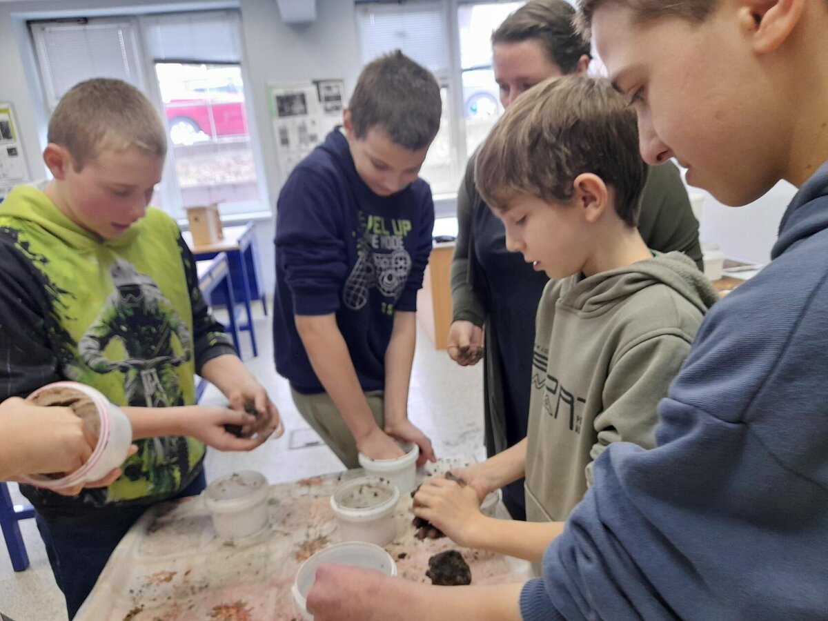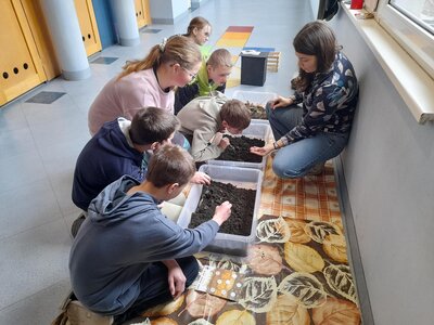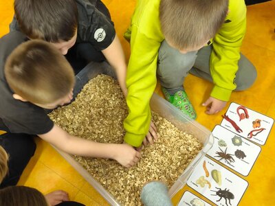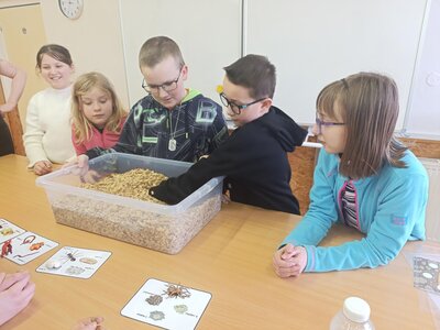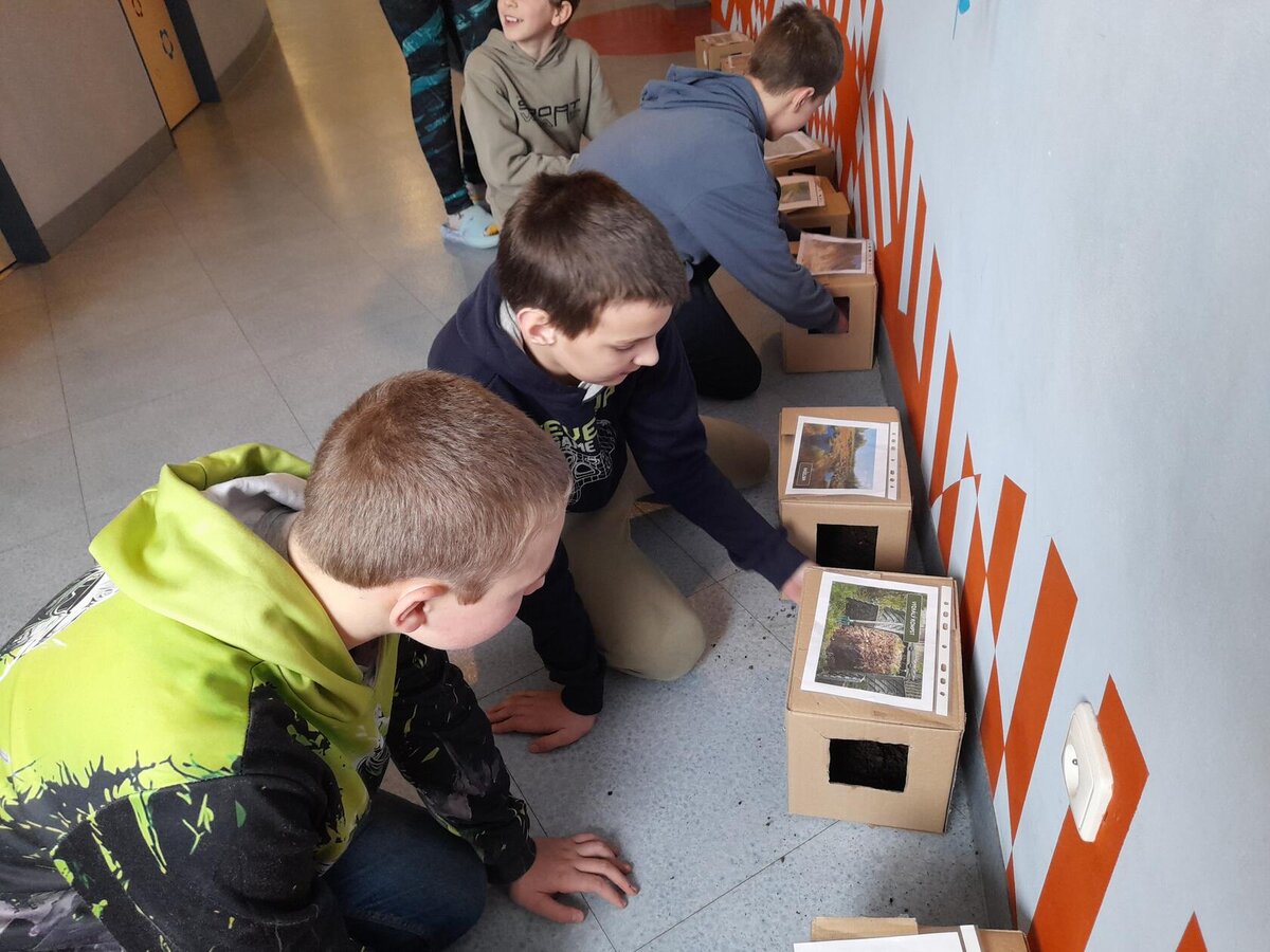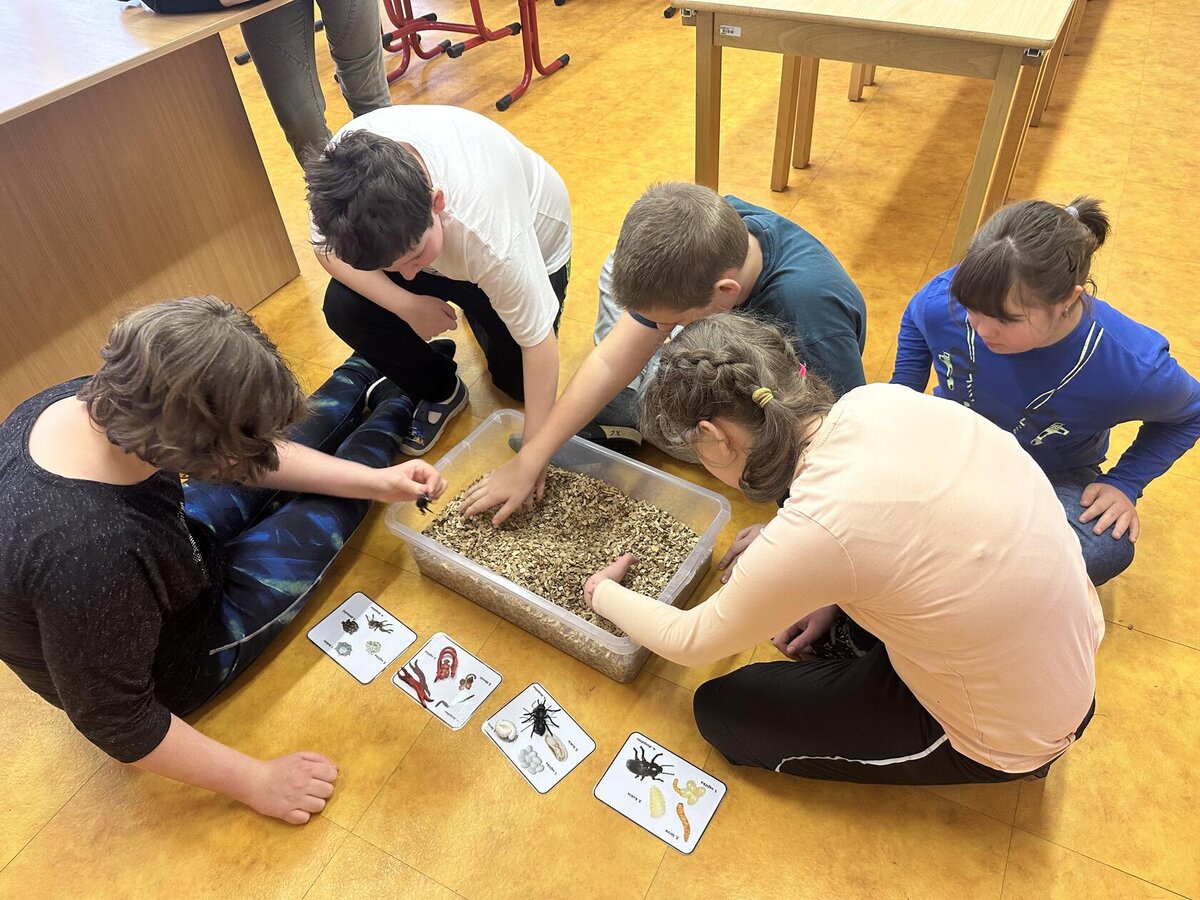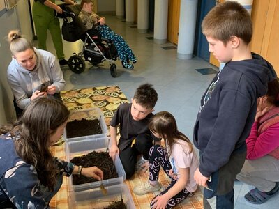 Žáci se seznámili s různými živočichy, kteří v půdě žijí nebo v různých norách v podzemí bydlí. A třeba myš zebrovanou, křečka syrského, žížaly nebo užovku červenou si i pochovali. (Sklípkan nemá dotyky rád, s tím se tedy nikdo nemazlil.) Prohlédli si šváby, stínky, cvrčky, potemníky i bahníka západoafrického - rybu, která dýchá plícemi vytvořenými z plynového měchýře. Bahníci tak mohou dýchat vzdušný kyslík (a bez přístupu k hladině se mohou zadusit). Období sucha pak přežívají zavrtaní do bahna a dýchají pomocí otvoru u úst.