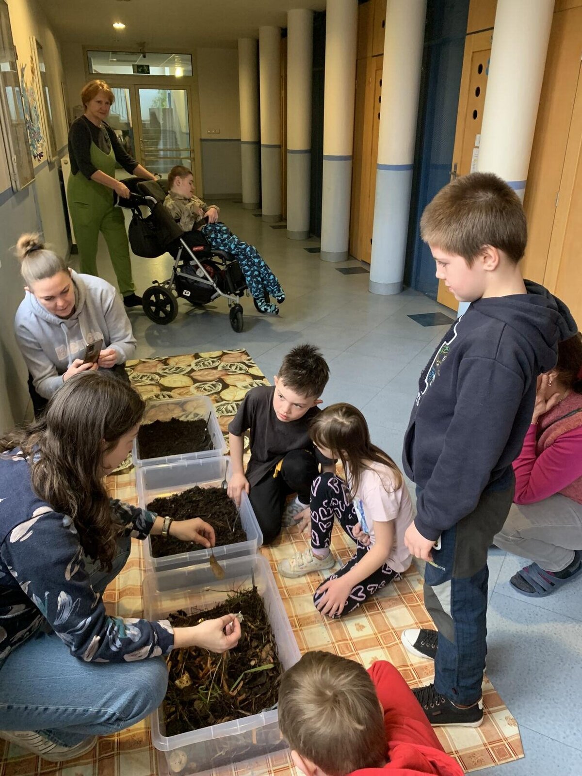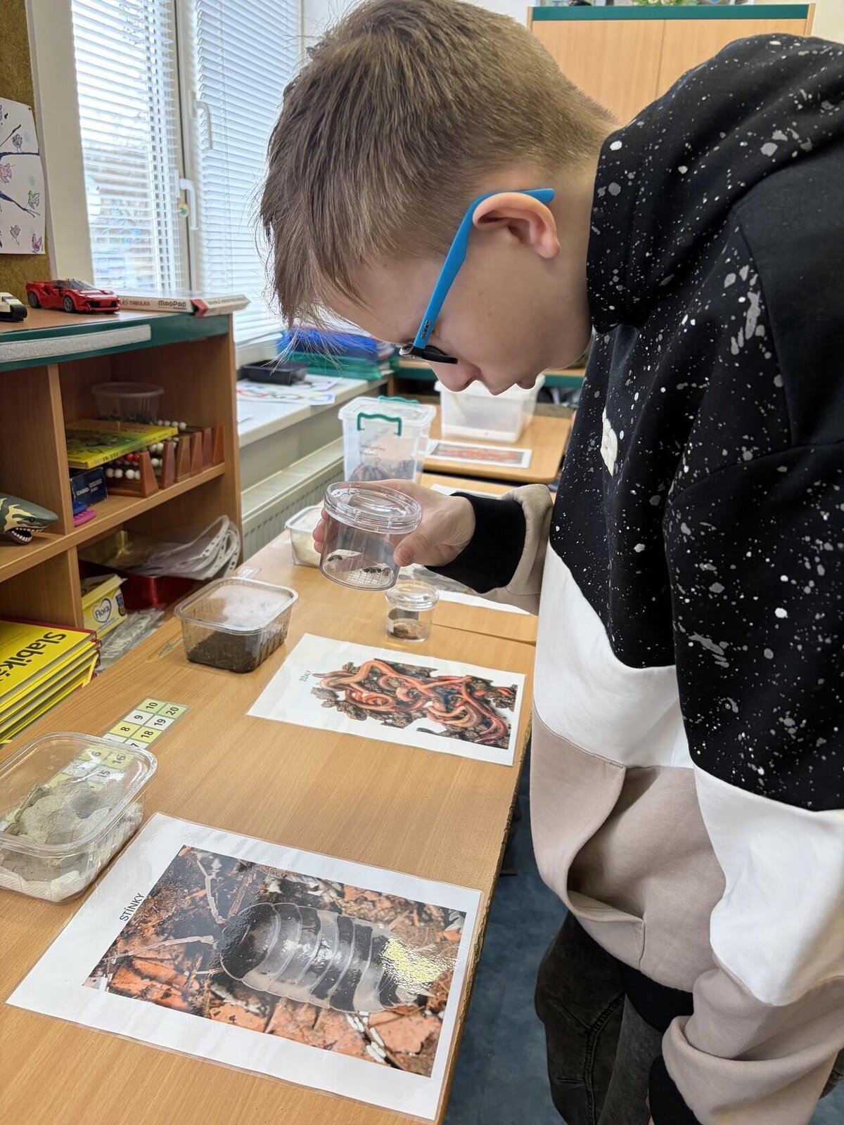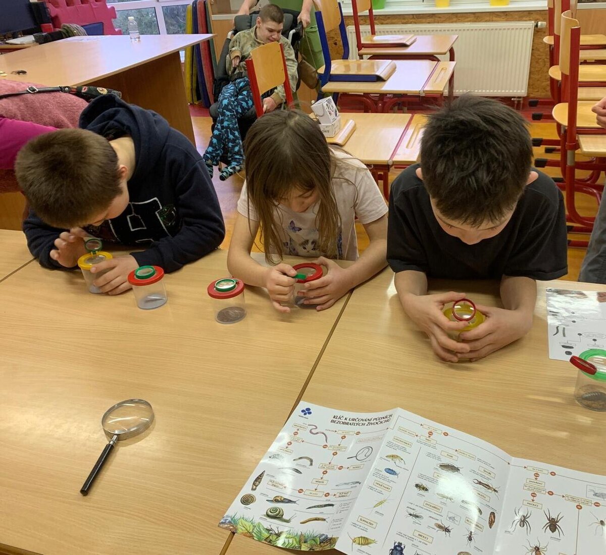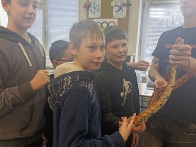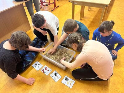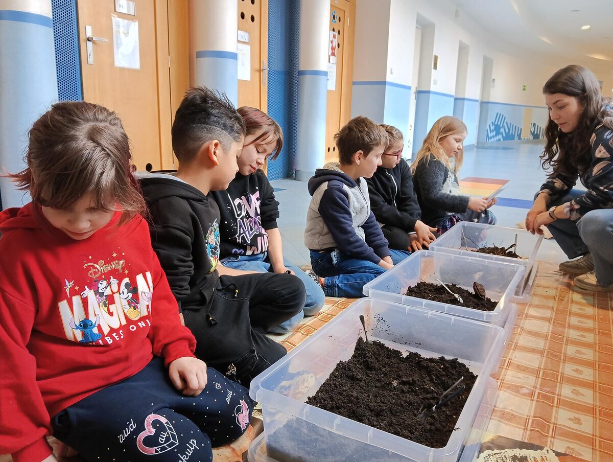 Žáci se seznámili s různými živočichy, kteří v půdě žijí nebo v různých norách v podzemí bydlí. A třeba myš zebrovanou, křečka syrského, žížaly nebo užovku červenou si i pochovali. (Sklípkan nemá dotyky rád, s tím se tedy nikdo nemazlil.) Prohlédli si šváby, stínky, cvrčky, potemníky i bahníka západoafrického - rybu, která dýchá plícemi vytvořenými z plynového měchýře. Bahníci tak mohou dýchat vzdušný kyslík (a bez přístupu k hladině se mohou zadusit). Období sucha pak přežívají zavrtaní do bahna a dýchají pomocí otvoru u úst.