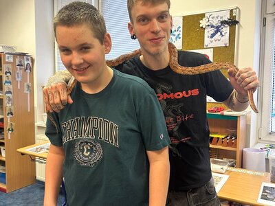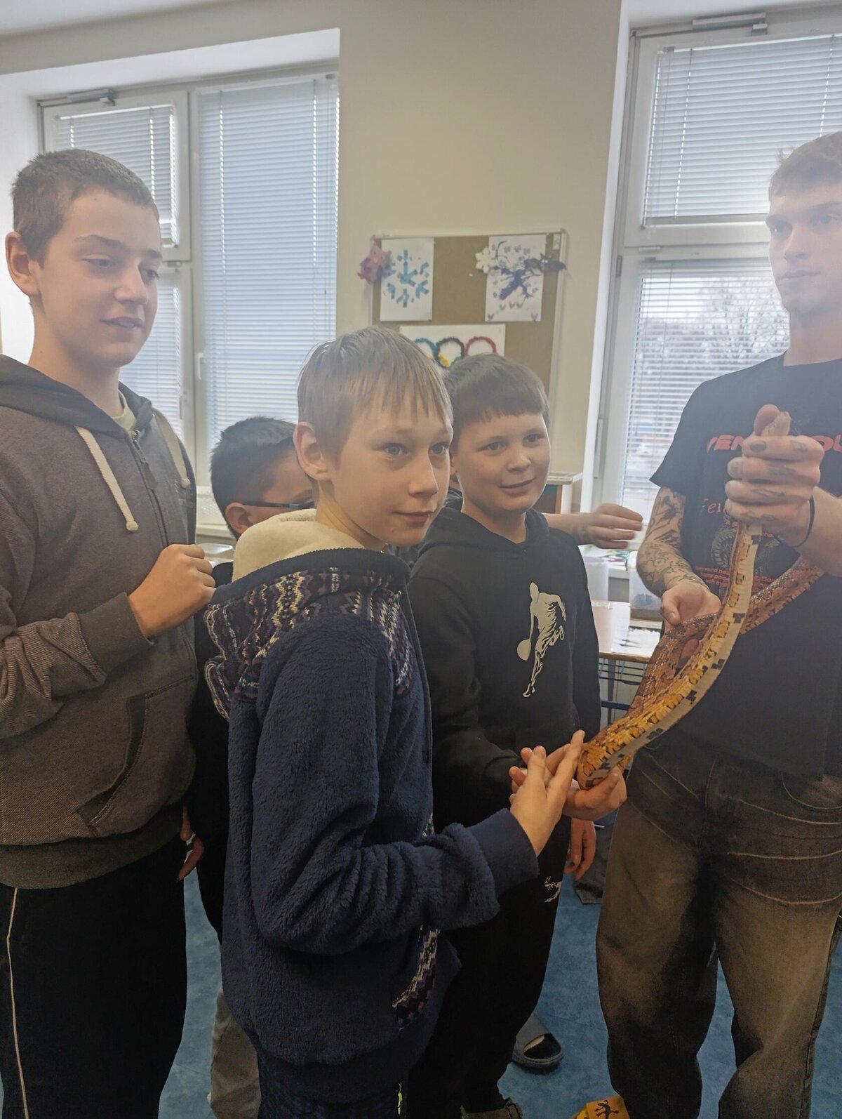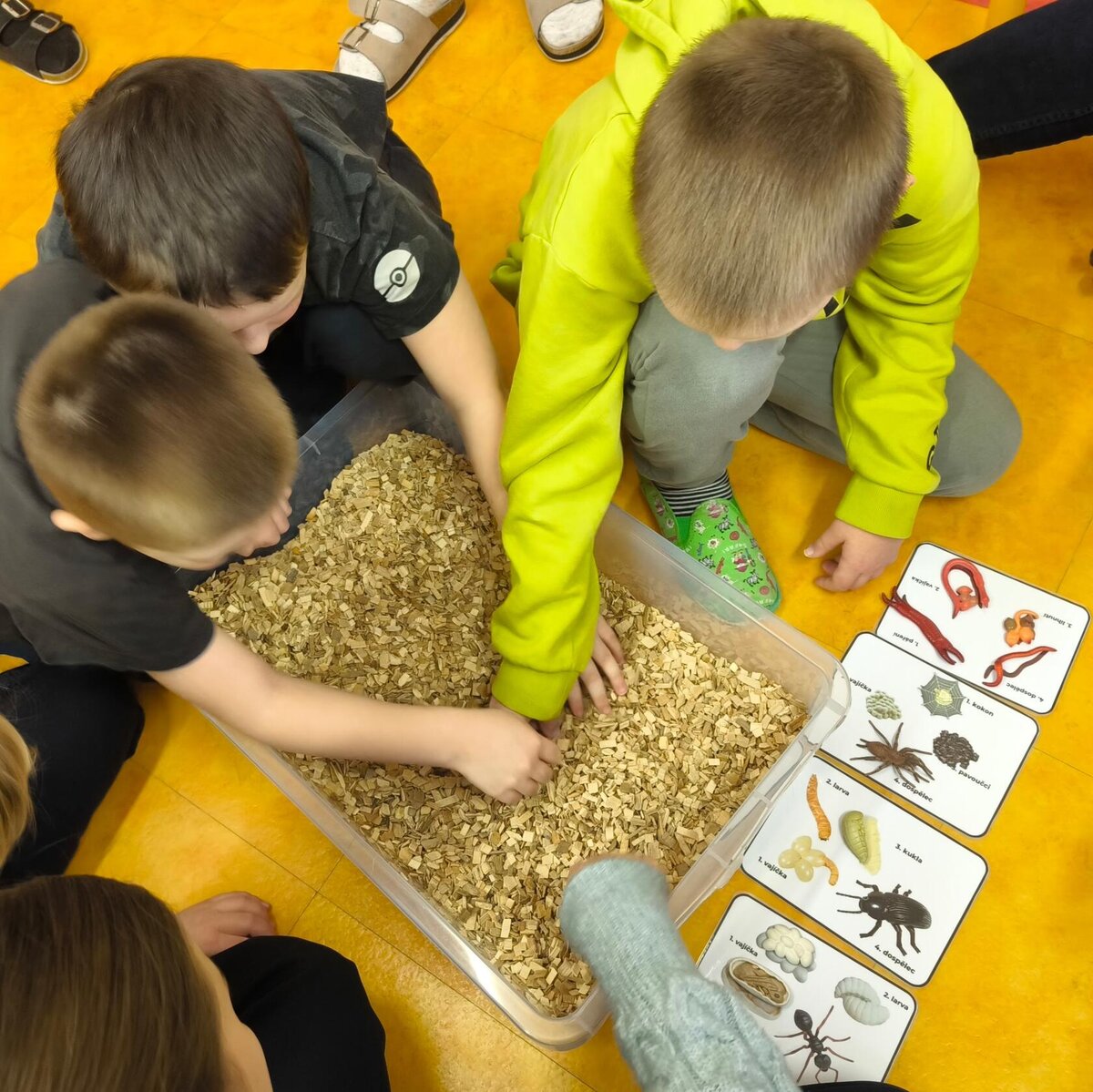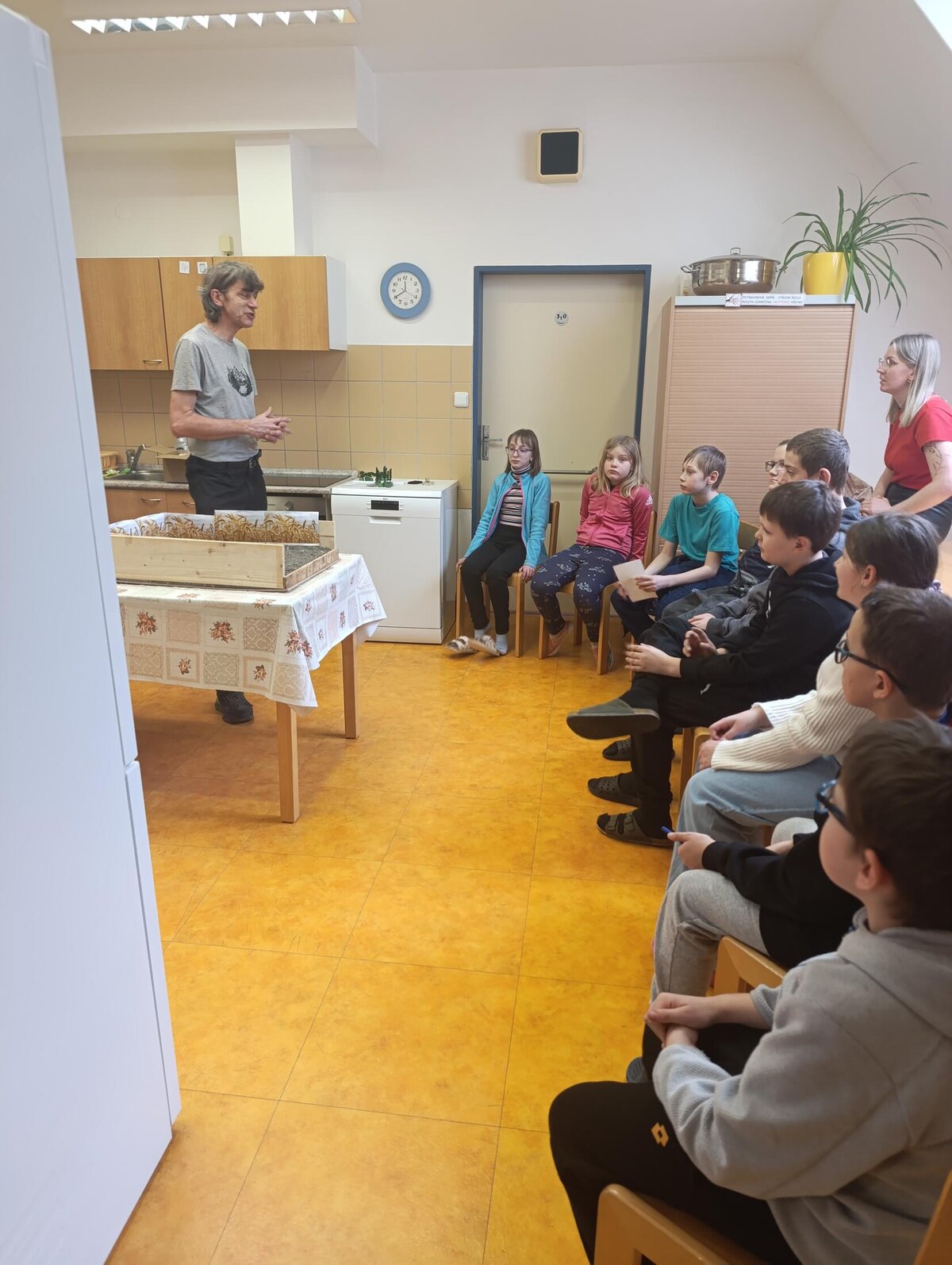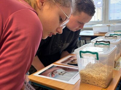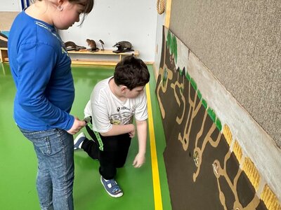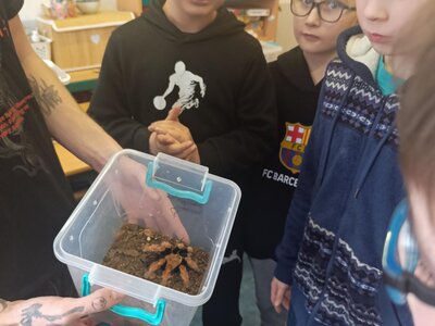 Žáci se seznámili s různými živočichy, kteří v půdě žijí nebo v různých norách v podzemí bydlí. A třeba myš zebrovanou, křečka syrského, žížaly nebo užovku červenou si i pochovali. (Sklípkan nemá dotyky rád, s tím se tedy nikdo nemazlil.) Prohlédli si šváby, stínky, cvrčky, potemníky i bahníka západoafrického - rybu, která dýchá plícemi vytvořenými z plynového měchýře. Bahníci tak mohou dýchat vzdušný kyslík (a bez přístupu k hladině se mohou zadusit). Období sucha pak přežívají zavrtaní do bahna a dýchají pomocí otvoru u úst.
