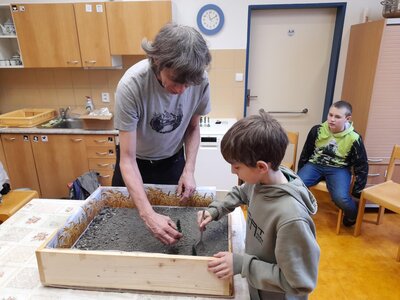 Různé druhy půd si žáci osahali a učili se je hmatem rozpoznávat.