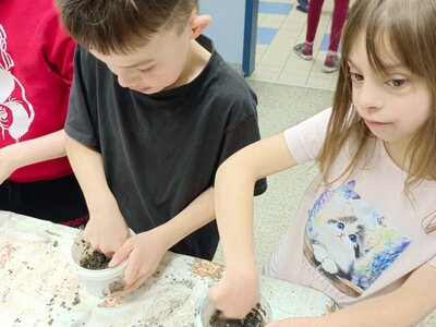 Každý žák si vyrobil dvě semínkové bomby se semínky lučních květin, z kterých na konci jara, až je vloží do půdy, možná něco vyroste.