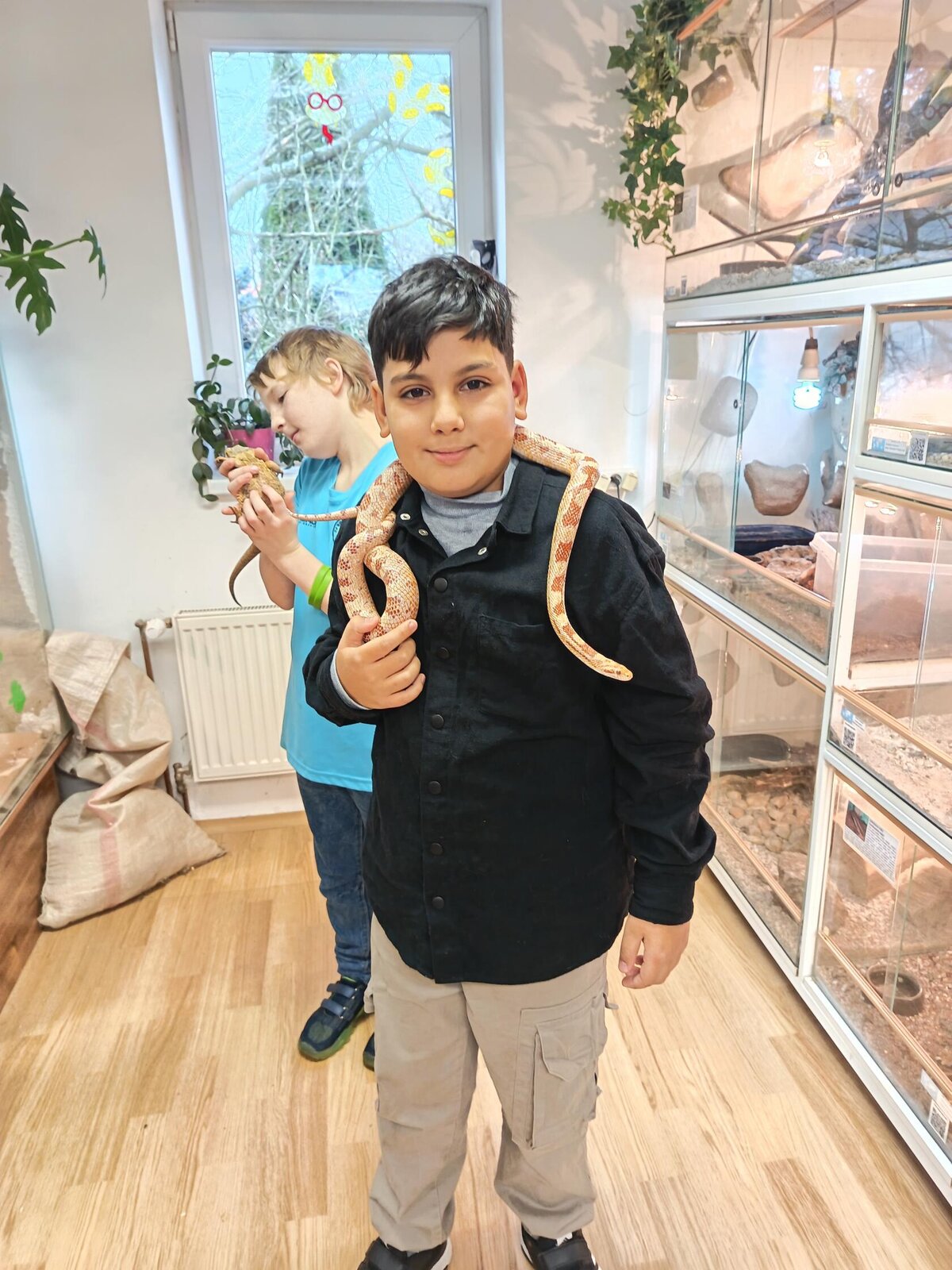 Dne 11. 11. 2025 jsme byli navštívit zázemí chovatelského kroužku v DDM. Žáci měli možnost vidět a pochovat si živočichy žijící u nás, ale také živočichy cizokrajné.