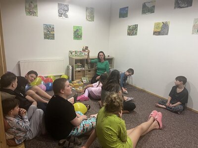 Z Rakovníka ve stejnou dobu odjížděla druhá skupina dětí. I ty se cestou na Čabárnu zastavily na Sletišti a vyzkoušely jízdu na koních. Po příjezdu na Čabárnu navštívili všichni Záchrannou stanici AVES a pak se nechali pohltit společným bubnováním. Po svačině vyrazili na procházku do Brandýska. Večer pak protančili na diskotéce a před spaním si ještě stihli poslechnout pohádku O kohoutkovi a slepičce.