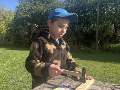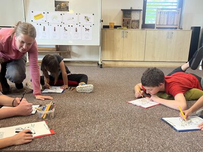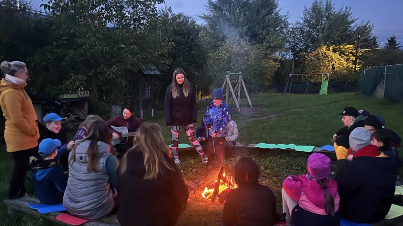 Už víme, "Kdo to bzučí v sadu": včely, čmeláci, motýli, vosy... Odpoledne jsme společně vyrobili čtyři ptačí budky. Napsali jsme dopisy těm, které máme rádi. Ve Vodním parku Čabárna jsme splnili řadu úkolů a našli poklad. Večer jsme si u ohně opekli špekáčky a zazpívali.
