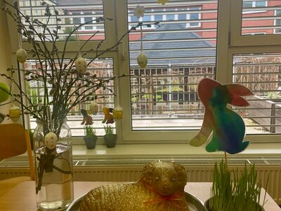 Od 30. 3. do 1. 4. jsme se věnovali projektovému vyučování na téma „Velikonoce jsou za dveřmi“. Během těchto dnů jsme dětem vysvětlili význam Velikonoc. Názorně jsme si ukázali všechny důležité symboly (kuře, zajíc, beránek, řehtačka, pomlázka, kočičky, kraslice, osení). Děti si vyzkoušely setí osení, výrobu zajíčka a slepičky z papíru, pečení beránka, zdobení kočiček i barvení vajíček.