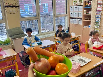 Leden patřil zdraví, prevenci a imunitě. Opakovaně jsme s dětmi navštěvovali solnou jeskyni, jejíž prostředí má blahodárné účinky na lidské zdraví. Pravidelně navštěvujeme školní bazén a saunu, které podporují prevenci onemocnění a celkové zdraví dětí. V rámci Prvouky jsme si povídali o lidském těle a jeho částech a učili jsme se je popsat. Při výtvarné výchově se děti učily nakreslit lidskou postavu. V hodinách pracovní výchovy jsme vyráběli čepice, šály a rukavice. Děti se učily navíjet vlnu na šablonu z kartonu. Tvořili jsme obrázky z ledových kostek a ukázali si, jak rychle se led při zahřívání rozpouští.